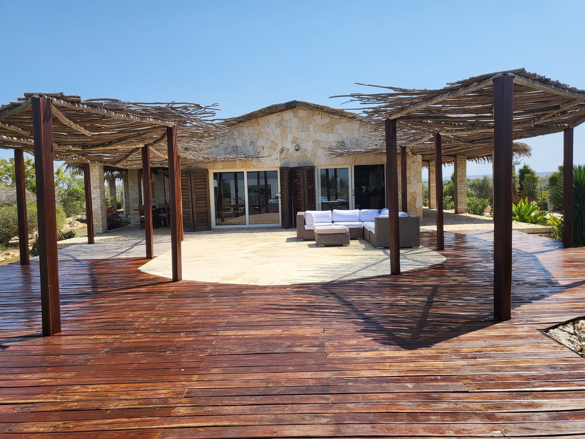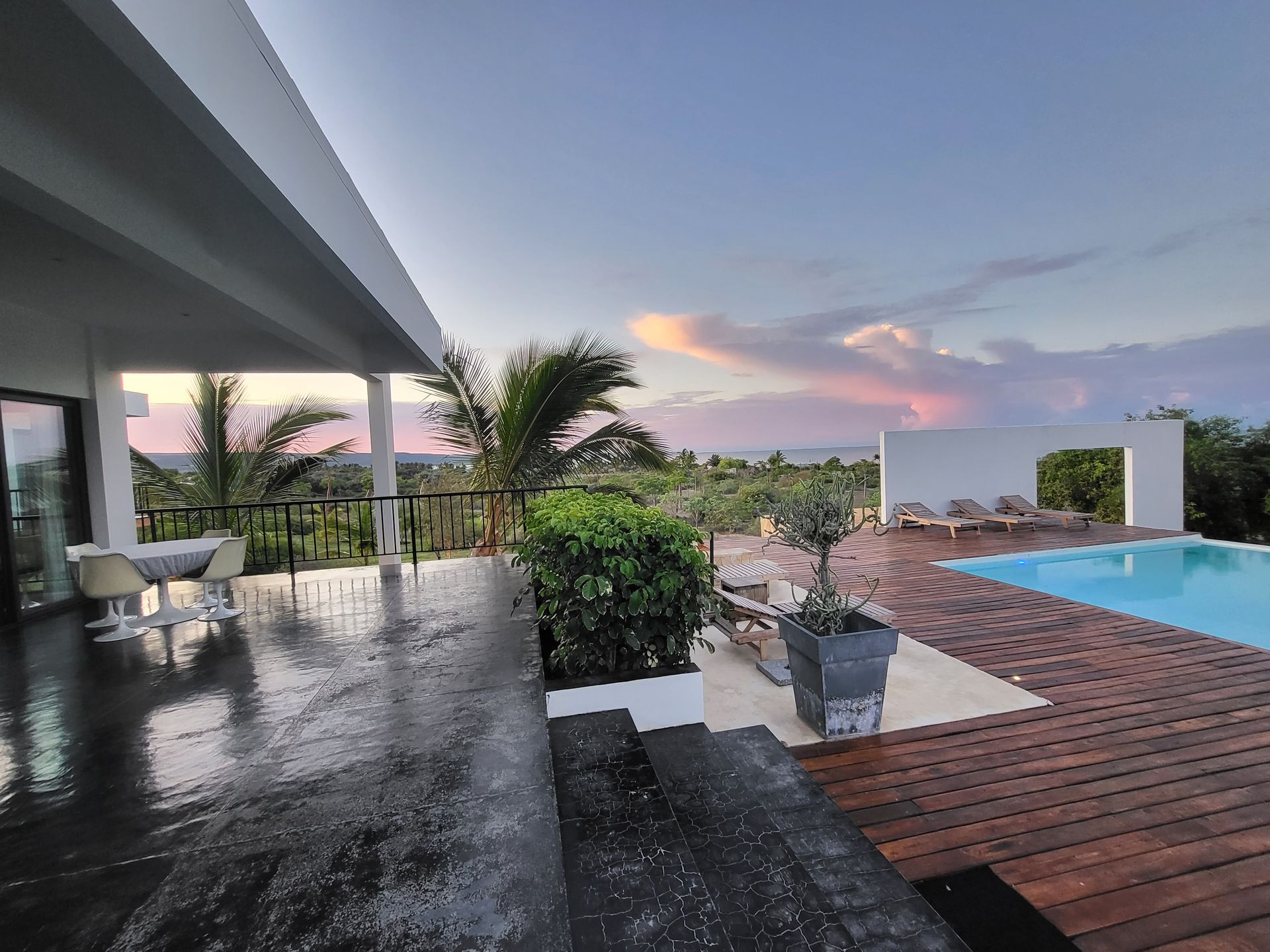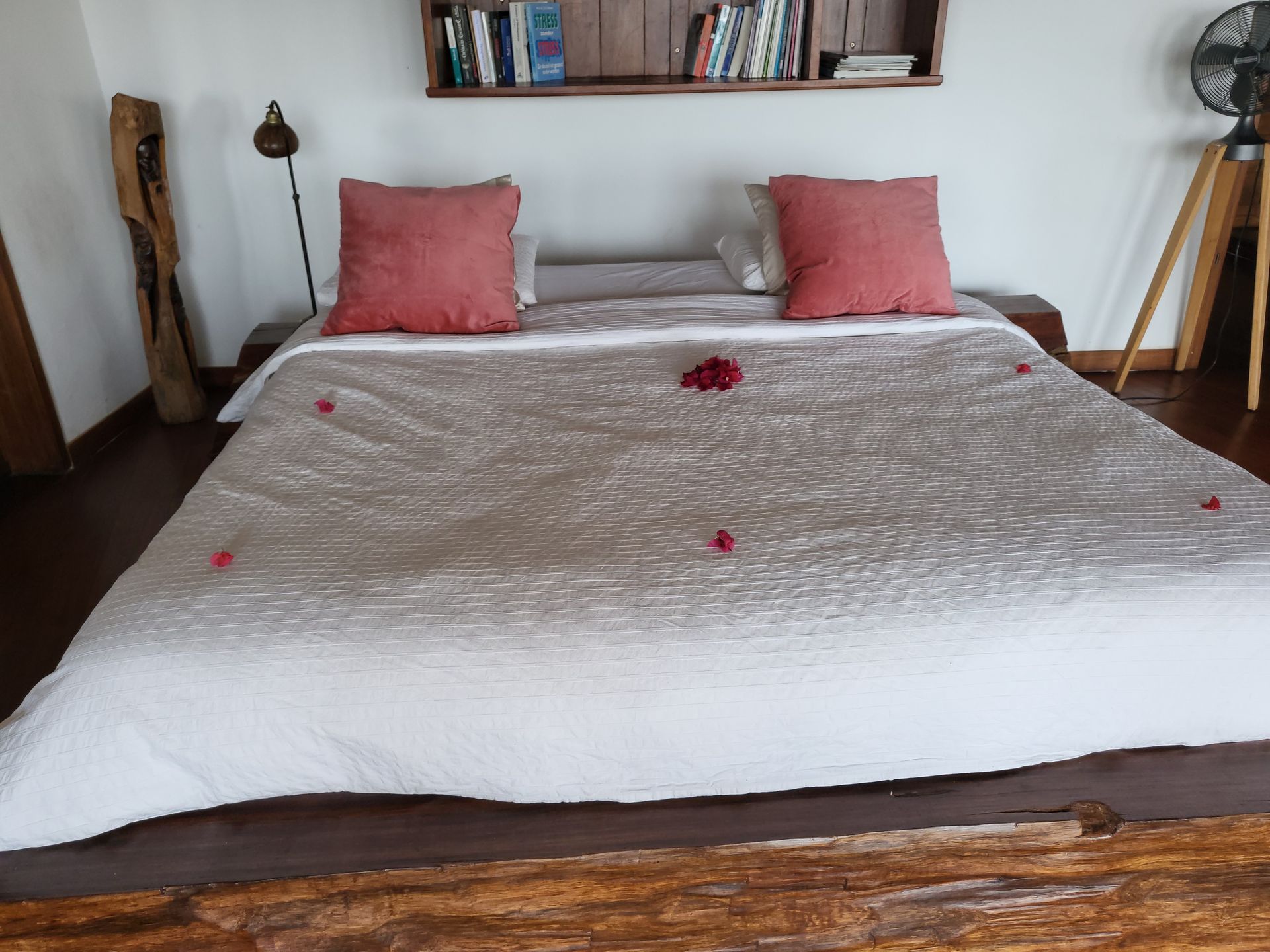 An open and creative space with beatiful detailed decorations. The big windows all around the villa give a great view to the ocean on the one side and to the mountains on the other side.