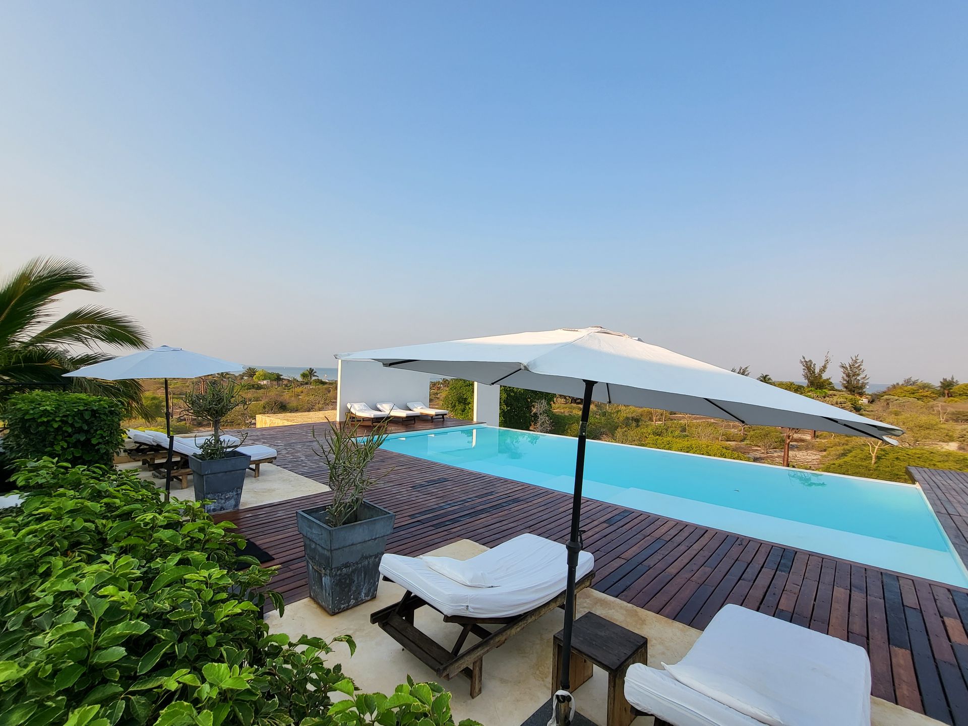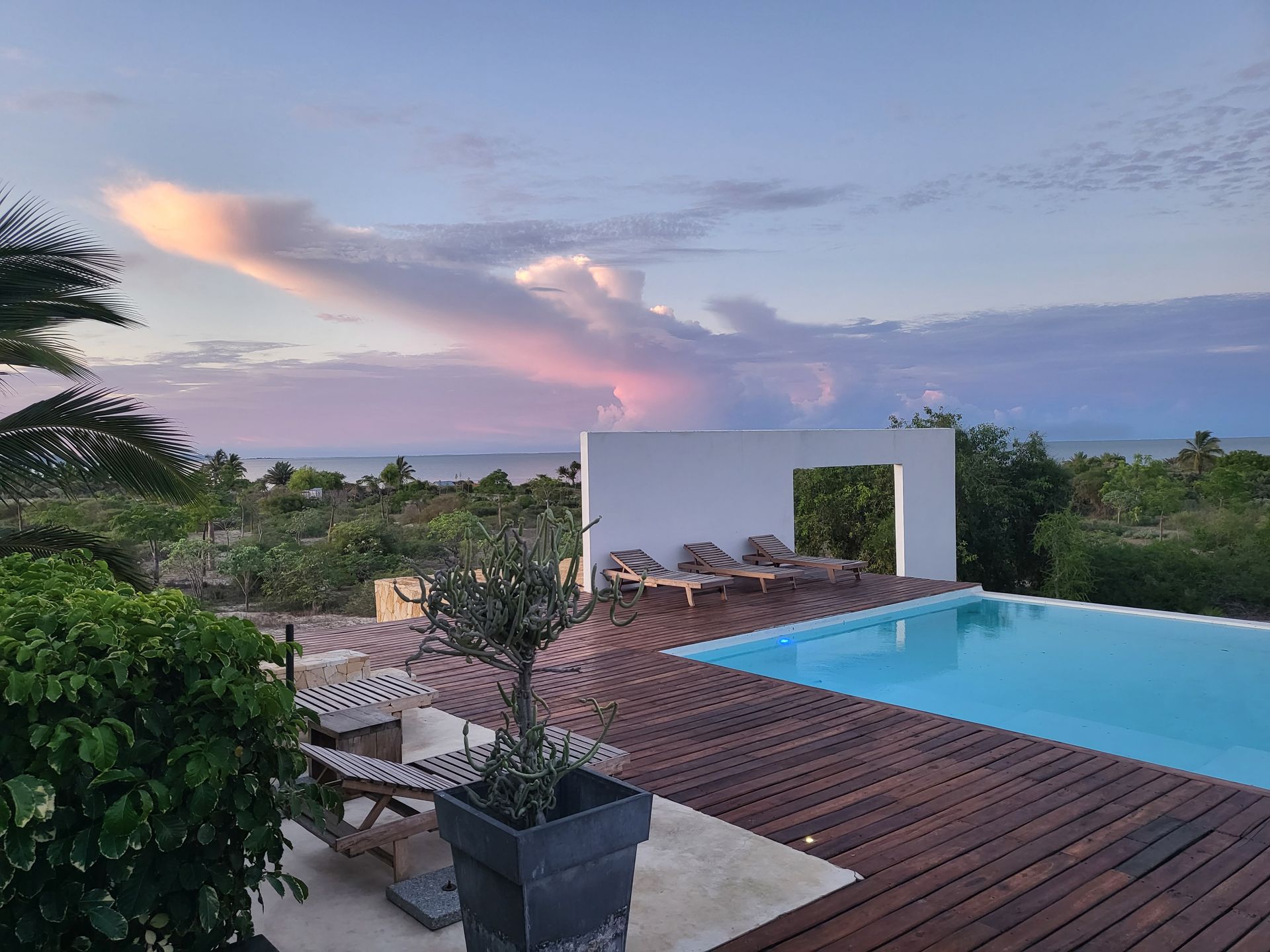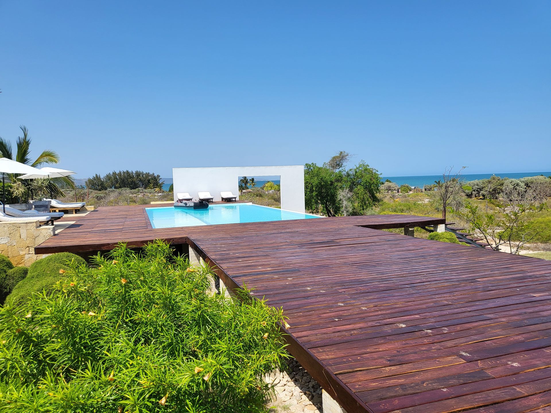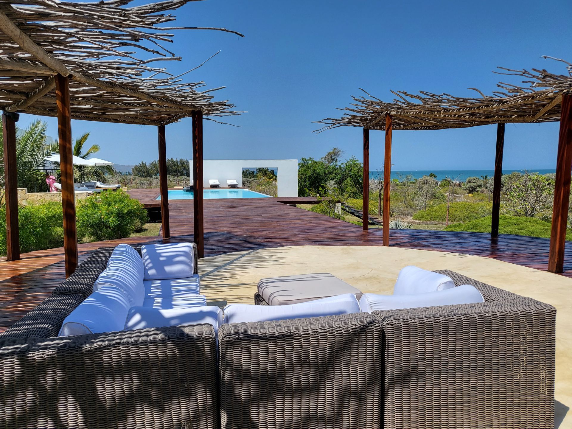 The villa is built upside the highest dune of Ankilibe, so you can enjoy ocean view and even mountain view from the house, terraces and swimming pool. An agreeable sea breeze is always present.