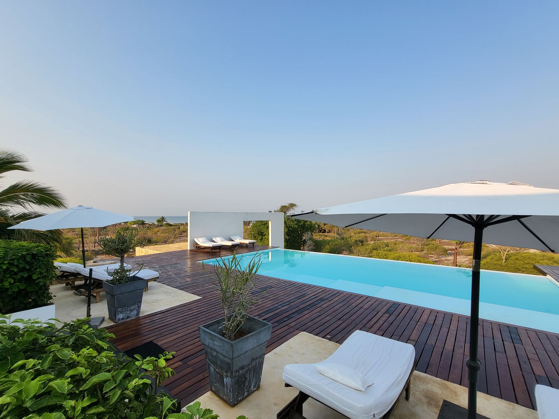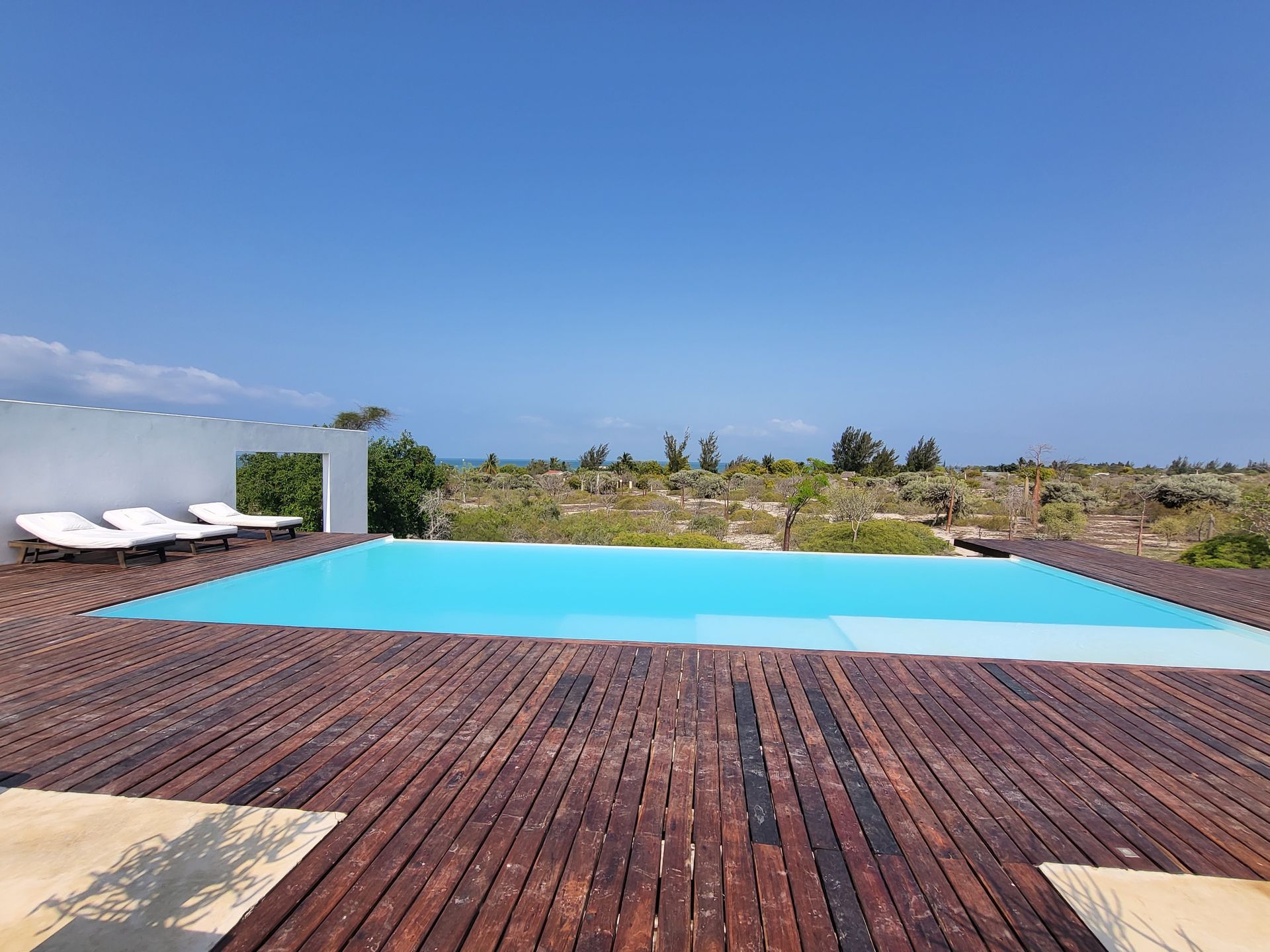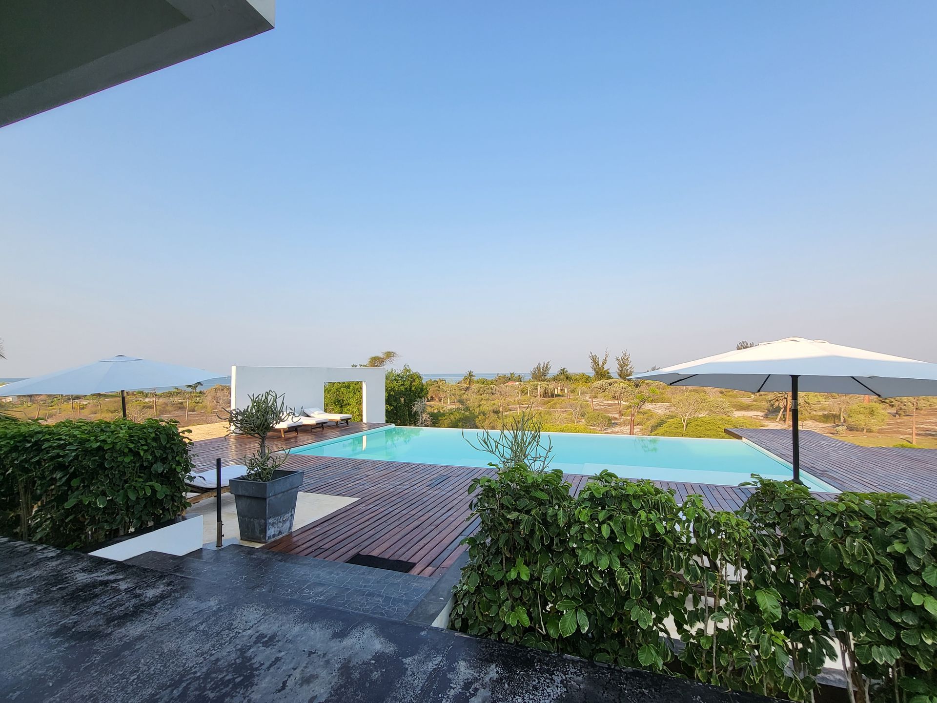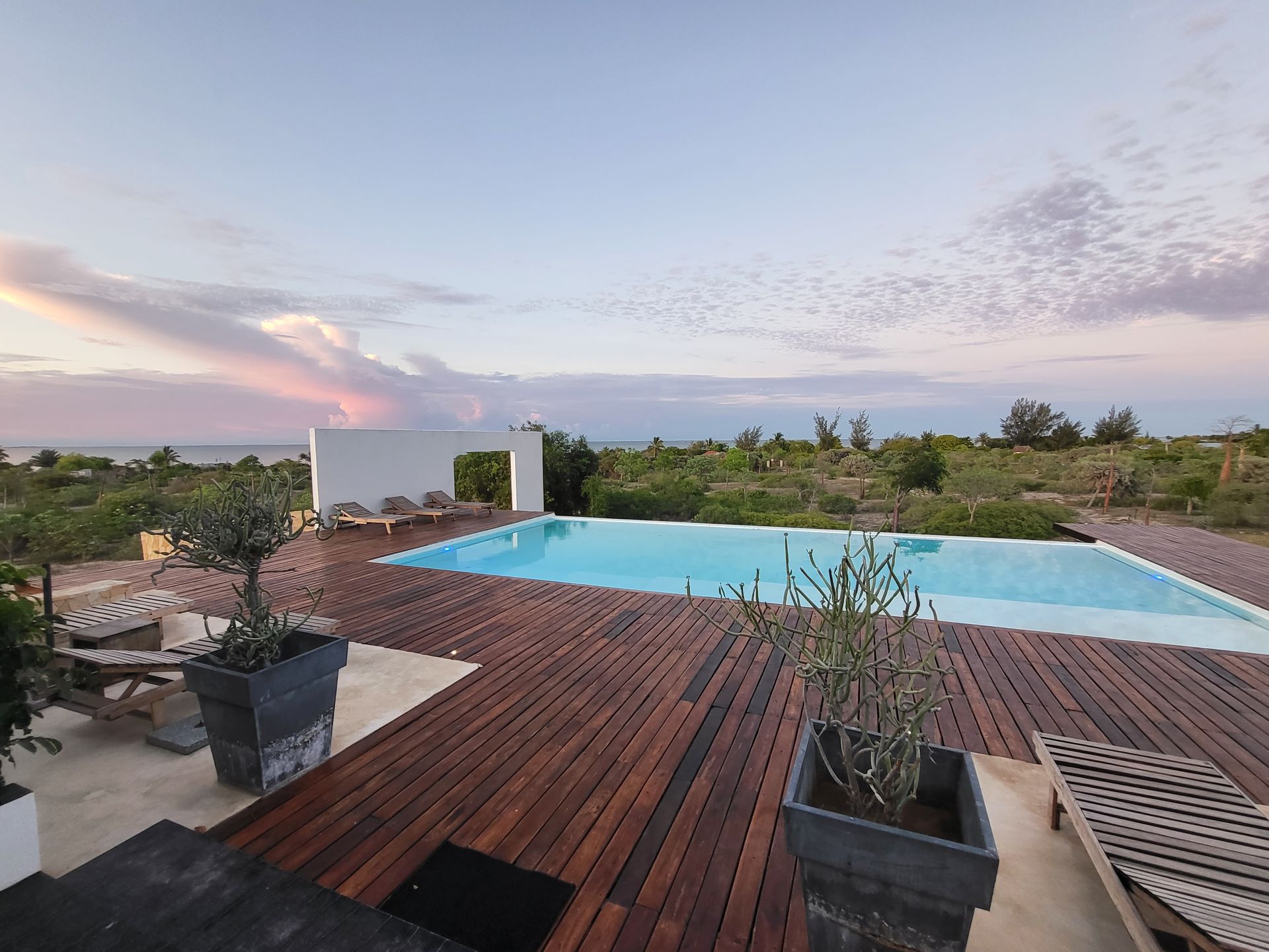 The villa is built upside the highest dune of Ankilibe, so you can enjoy ocean view and even mountain view from the house, terraces and swimming pool. An agreeable sea breeze is always present.